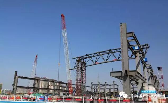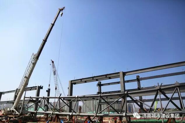 9月8日上午,济南西部会展中心项目的第一榀(pǐn,屋架量词)屋面钢结构桁架吊装完成,五号展馆的钢结构主体雏形初现,济南西部会展中心的建设步伐又推进了扎实一步。