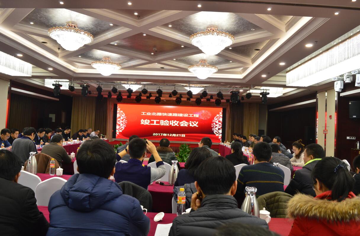 2017年12月21日上午,工业北路快速路竣工验收会议在鸿腾国际酒店举行。质监站、建设、设计、勘察、监理、施工等单位领导和项目参建人员参加了竣工验收会议,并成立了验收小组,资产运营副总经理韩炜任组长。集团公司副总经理丁建勇、副总工程师郭倩、工程管理部、同晟路桥、三分公司、四分公司经理及主要参建人员参加了会议。
