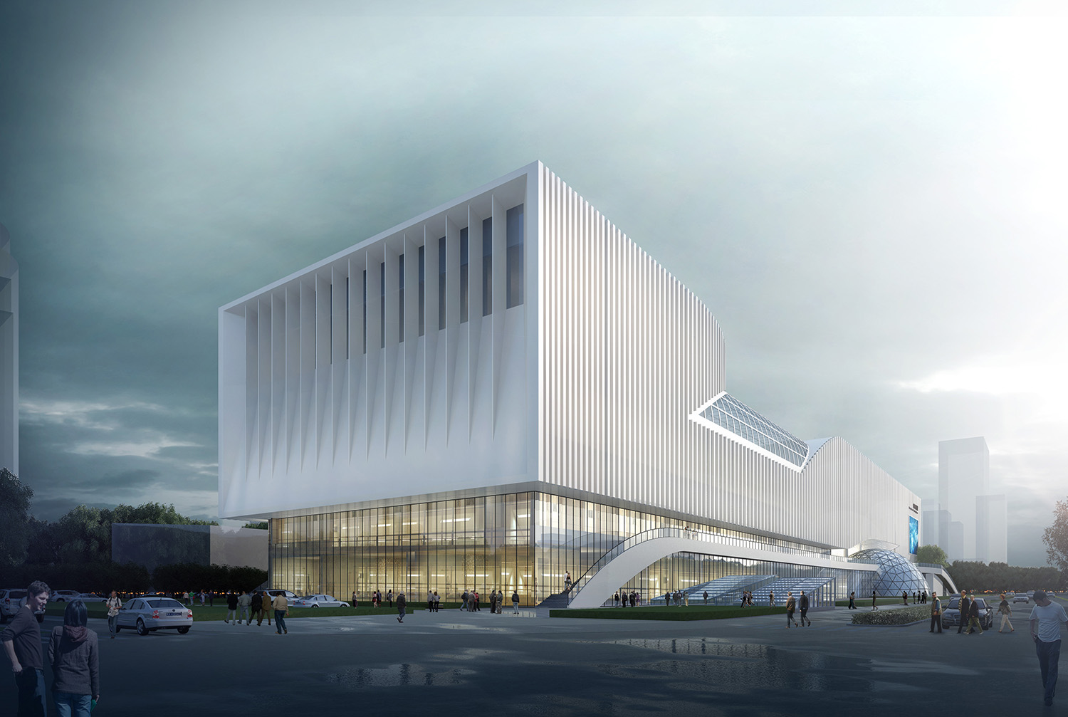 山东省科技馆新馆建筑将数学符号“∞”嵌入形体,意即"无限",隐喻随着社会进步,科技领域无限未知、无限发展并有无限可能。项目整个形体简练、抽象、完整,既充盈着科学气质,又流露出海岱文化中的山水意蕴,提出了"山海无限"的设计理念,含蓄表达了齐鲁文化中的厚重与灵动,力求建筑与自然交融,科技与生活交融,使文化、自然、生活融为一体。