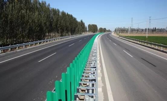 工程中央分隔带安装新型防眩网,颜色亮丽、美观大方,既隔离上下行车道,又防护夜间行驶车辆灯光,达到防眩和隔离的目的,为旅游大道增添了一道亮丽的风景线。
