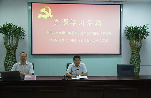 为进一步学习贯彻落实党的十九大精神,深入领会山东省新旧动能转换重大工程会议要求,激发广大党员干部新时代新担当新作为,2018年5月25日下午,济南金诺公路工程监理有限公司党支部、济南金衢公路勘察设计研究有限公司党支部组织全体党员、中层及以上干部、积极分子五十余人在金衢公司第一会议室进行党课学习。济南金诺公司党支部书记、董事长兼总经理冯子强,济南金衢公司党支部书记、董事长兼总经理张建等领导出席学习活动,会议由济南金衢公司张建书记主持。