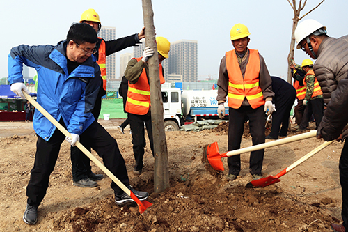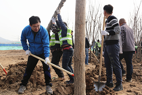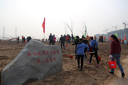 在第40个植树节来临之际,3月10日上午,济南城市建设集团组织干部职工在华山生态湿地公园园林一期B区开展义务植树活动。集团党委书记、董事长李国祥,集团党委副书记、总经理李培杰等集团领导及150多名干部职工参加了植树活动,共栽种栾树、白腊树、樱花树、五角枫等各类苗木600余棵。