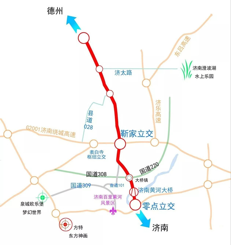 该项目是济南市“八纵七横六射八连”干线公路网八纵中的一纵,是贯穿济南南北的主要通道,通车后彻底打通了济南“北大门”的“瓶颈”,城市发展空间再次拓展,省会城市群经济圈和济南“携河北跨”发展战略的实施更进一步。