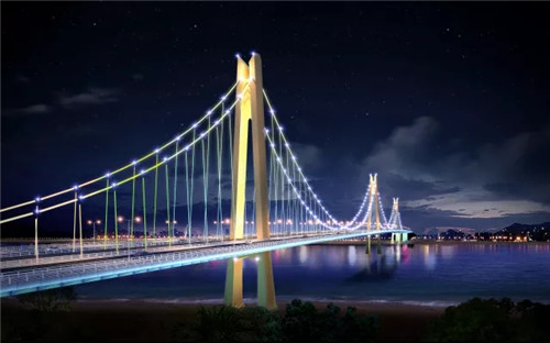 凤凰黄河大桥的外观设计取杜甫《望岳》一诗中“钟灵毓秀”之意。寰宇茫茫,齐鲁泱泱。钟灵毓秀,源远流长。自锚式悬索桥具有兼收并蓄、刚柔相济的浑厚风格,索塔体现其阳刚的一面,而流畅的主缆线形则将其柔美展现的淋漓尽致。