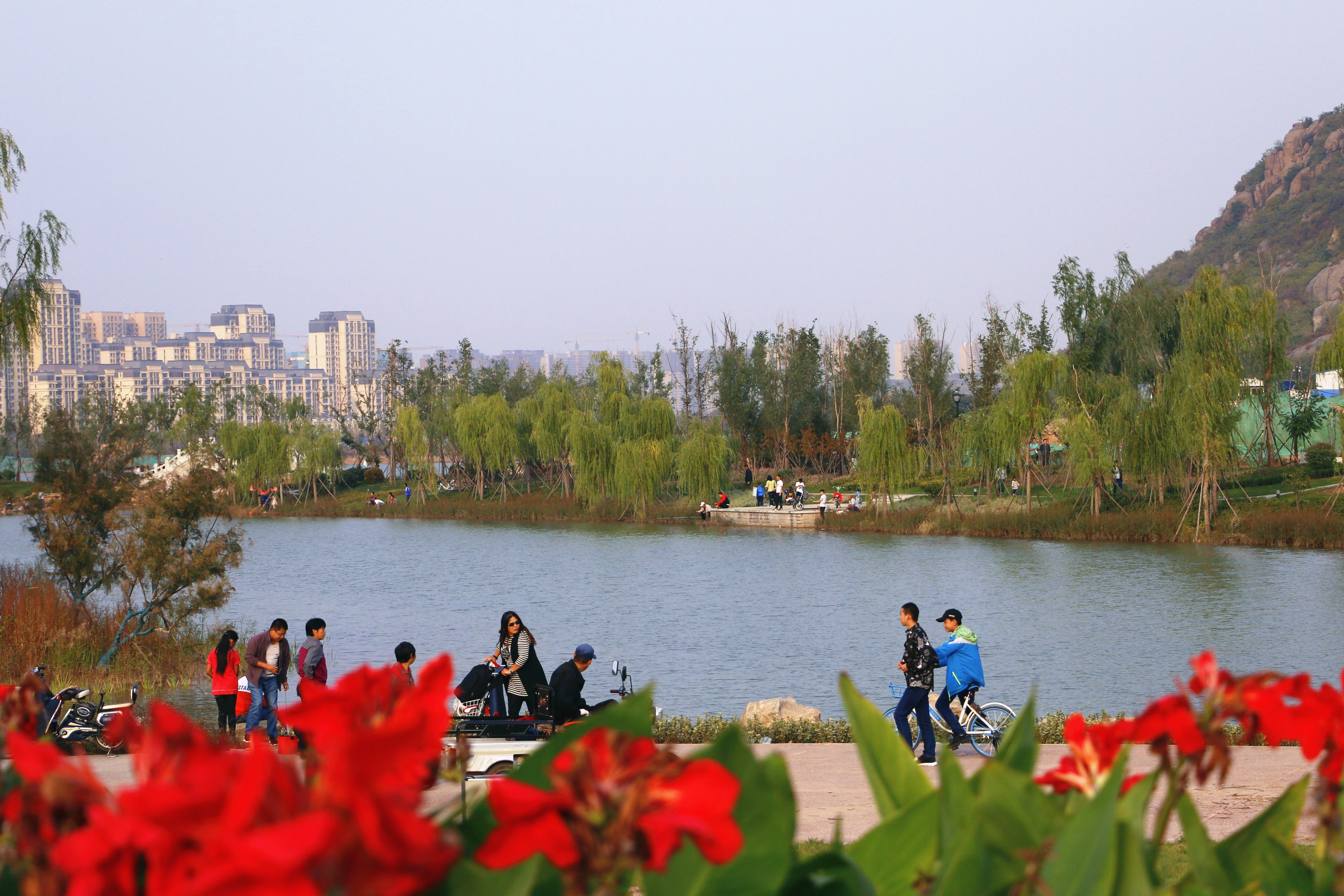 沿着环湖步道兴之所至,湛蓝的天空下,波光粼粼的湖面,生机盎然的草木,与平地高耸的华不注交相辉映,放眼四顾,山光水色尽收眼底,“特别美”。