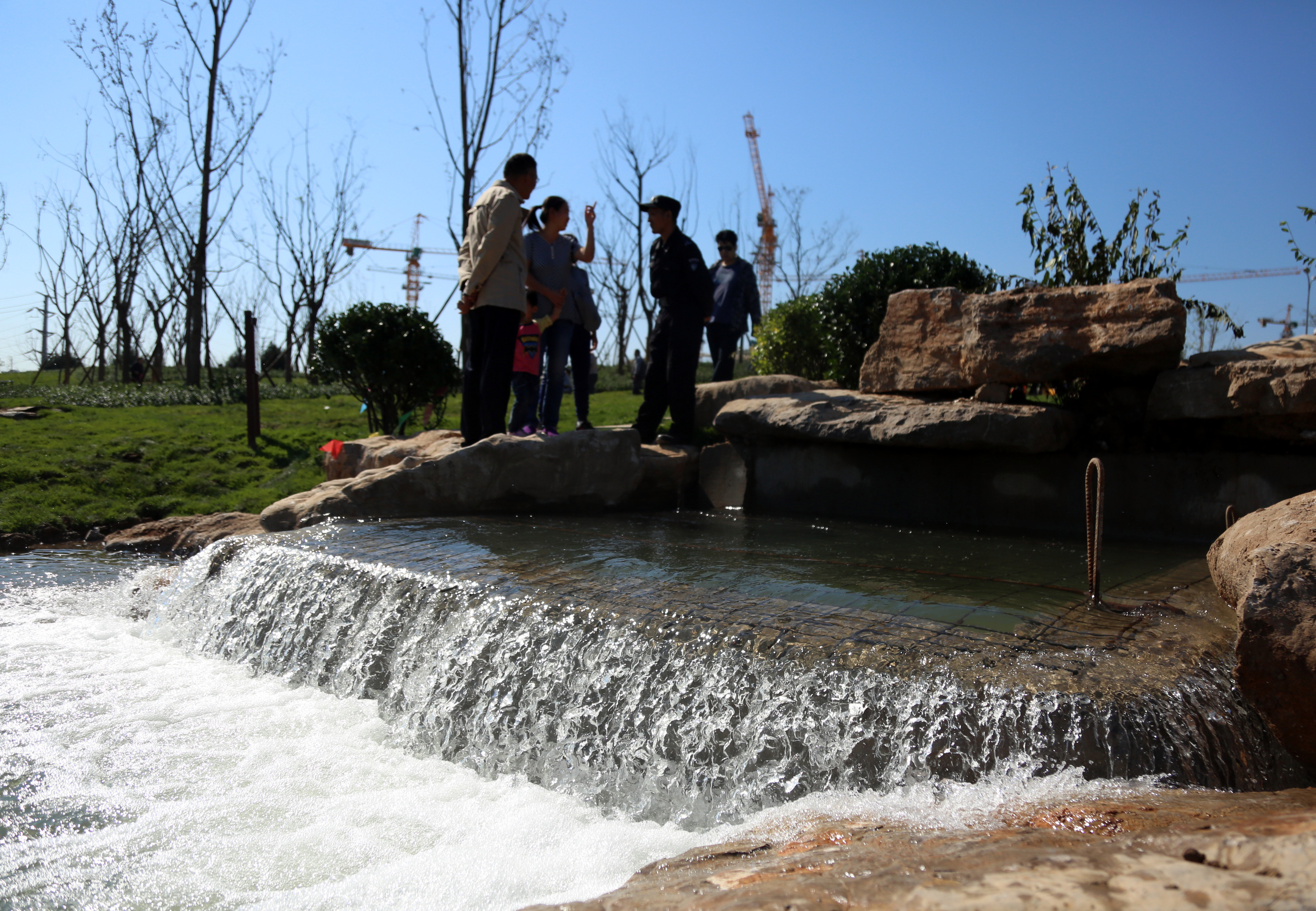 6个注水口之一正以每天4万方的速度,向湖区注入澄碧的清水,华山湖湖面与日俱增,最终形成3700亩水域面积,并一跃成为中国第5大城中湖;