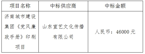 济南城市建设集团《党风廉政手册》印刷项目中标公示