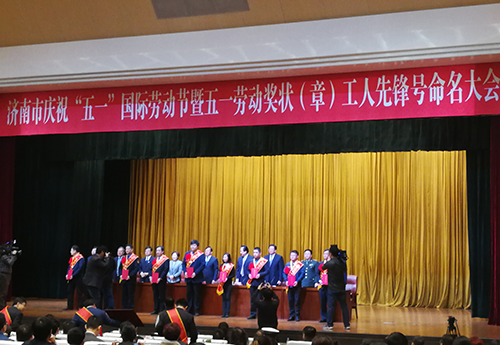 2018年4月23日,济南市总工会在龙奥大厦召开济南市庆祝“五一”国际劳动节暨五一劳动奖状(章)工人先锋号命名大会。大会表彰了一批工作突出、贡献卓著的先进集体和先进个人。