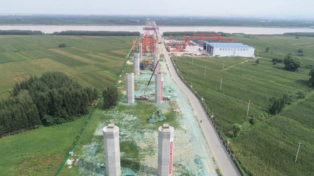 由济南城市建设集团负责建设的凤凰路黄河大桥工程(G220至济青高速公路王舍人互通立交连接线工程)位于济南市历城区、高新区、济阳区,项目路线南起坝王路与荷花路交叉口,接现状坝王路,依次跨越邯胶铁路联络线、南水北调工程济东明渠后继续往北,在小河套村向西北方向延伸,跨越黄河后与G220平交。项目全长6683米,包括特大桥2座,其中跨黄河主桥和引桥长3788米,跨邯胶铁路联络线及南水北调桥梁长1323米。