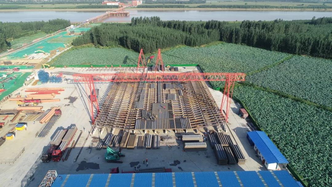 目前,按照集团北跨桥隧“大干六个月、决胜秋冬季”会战安排部署,项目各项工作正有序推进中。项目一标桩基、承台、墩台身施工有序推进,完成跨邯胶铁路(45+72+45)m左中右三幅162m连续梁浇筑、其他段落连续梁积极展开施工。项目二标钻孔桩、承台、墩柱等各项施工有序推进中。北侧钢箱梁板单元进场累计约4300t,南侧钢箱梁板单元进场累计约2900t,南、北岸钢箱梁第一轮总拼分别完成约60%。