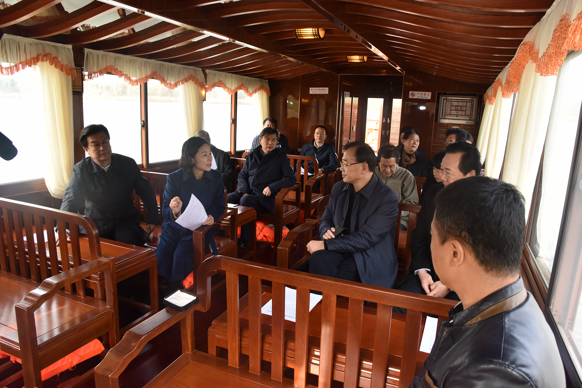 全国人大调研组一行现场察看了湿地主入口、游客服务中心、天鹅湖等,并乘船实地参观考察了湿地环境与资源保护工作。调研组听取了山东济西湿地管理有限公司总经理张卫东对湿地项目的现场汇报,对湿地生态保护提出了建设性意见。