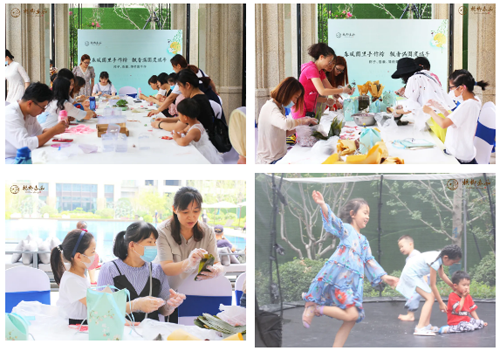 杨柳春风举行了端午民俗体验活动,吸引来访客户及家人参与粽子、香囊、薄荷膏手作的环节,每一件手工作品都倾注了对节日的美好祝福;活动现场摆放了端午节民俗、诗词展板,让家人们更好的感受端午节日氛围;邀请孩子感受园区泳池和蹦床的欢乐。此次活动让家人们在春风园里共度温情端午,用手作的方式弘扬传统文化,动手动脑间感受节日的味道。活动期间为现场来访的客户赠予了艾草花束、五彩绳的伴手礼,加强了与客户及业主家人之间的交流,增进了友谊。