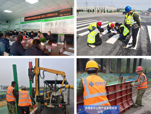 金宇公司承建G105京澳线平阴绕城段改建工程SG-3标段交通安全设施工程施工,工程内容主要为标志、标线、护栏、防眩网等,本标段需要进行交通导流的路段主要在k0+000、k0+898、k1+916、k2+667、k11+051的平面交叉路口处;在平交路口处主要为标志、标线施工,施工特点是施工速度快、占用道路时间短,因此采用临时围封,以每1600米作为一个施工段落。目前已全部完成建设任务,顺利通过山东公路技师学院检测中心对工程质量检测,评定工程质量合格,具备交工验收条件。