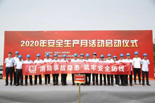 6月1日上午,济南金诺公路工程监理有限公司在济齐大道S101济德线槐荫区京台高速至济齐黄河大桥段改建工程现场举行了2020年“安全生产月”活动启动仪式,金诺监理公司各部室、各分公司以及S101改建工程等各参建单位代表百余人参加启动仪式。