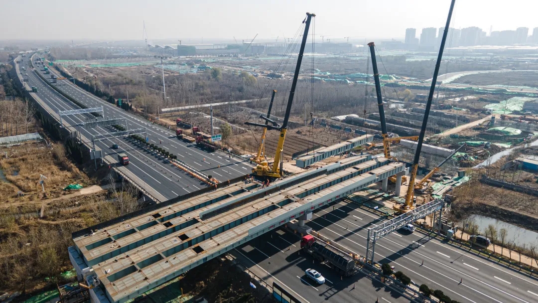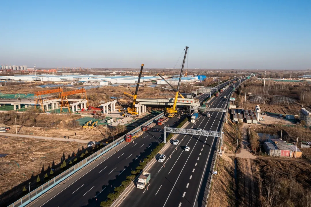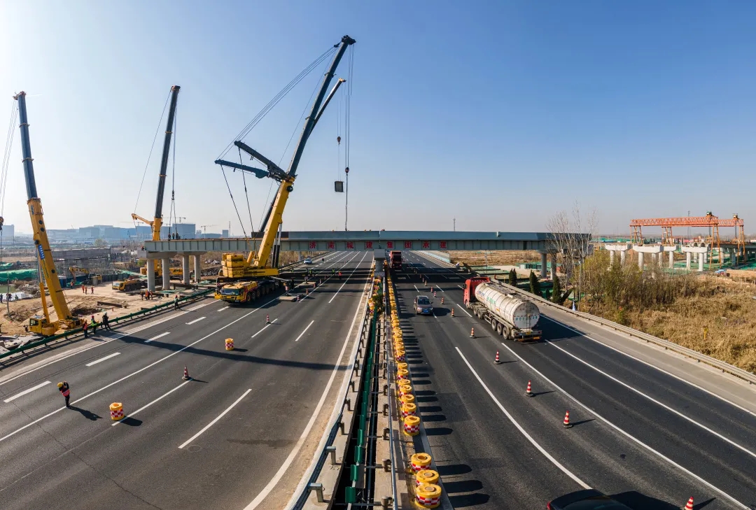 11月25日,历时8小时施工作业,由建设集团受委托建设,集团所属济南城建集团有限公司第四分公司负责施工建设的济南新旧动能转换起步区智慧物流园区二期工程一标段西环路跨线桥钢箱梁吊装完成,顺利跨越青银高速。