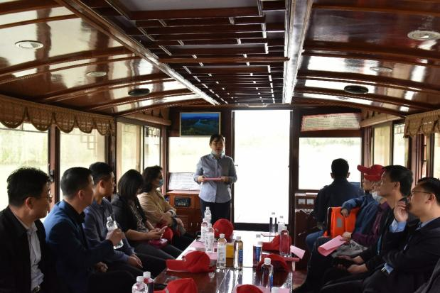 活动中,全体人员参观了济西湿地,并详细了解了济西湿地的建设情况。党员代表分享了“中共一大南湖红船”故事,全体党员共同诵读《红船,从南湖启航》,湿地青年员工进行红歌表演。