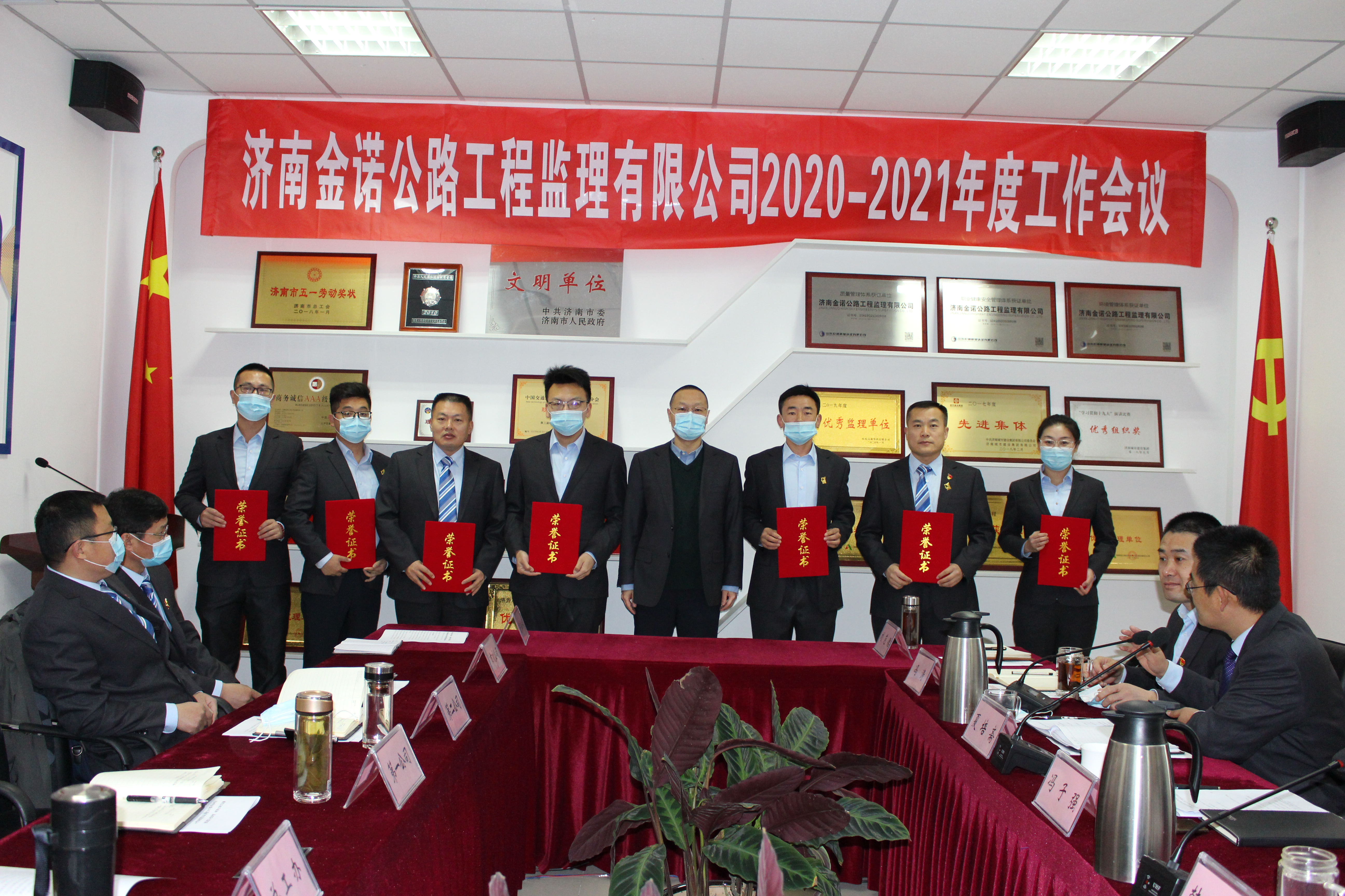 3月7日,济南金诺公路工程监理有限公司召开了2020年度总结表彰大会暨2021年度工作会议,总结2020年度工作,安排部署2021年度工作任务,动员全体干部职工统一思想、认清形势、明确目标、狠抓落实,努力推动公司各项工作迈上新台阶。公司党支部书记、董事长冯子强,党支部副书记、总经理韩作新,公司领导班子成员,全体党员,各部室和各分公司负责人及受表彰人员代表参加了此次会议。会议由副总经理夏培斋主持。
