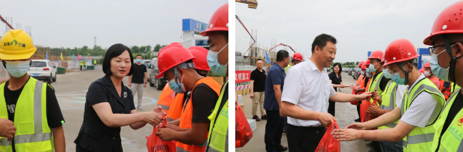 活动中,慰问人员将防暑降温慰问品送到建设者手上,感谢他们为济南建设所作出的贡献,并叮嘱大家劳逸结合,增强自我防护意识,避免高温及疲劳作业,统筹抓好疫情防控、安全生产和项目建设工作。