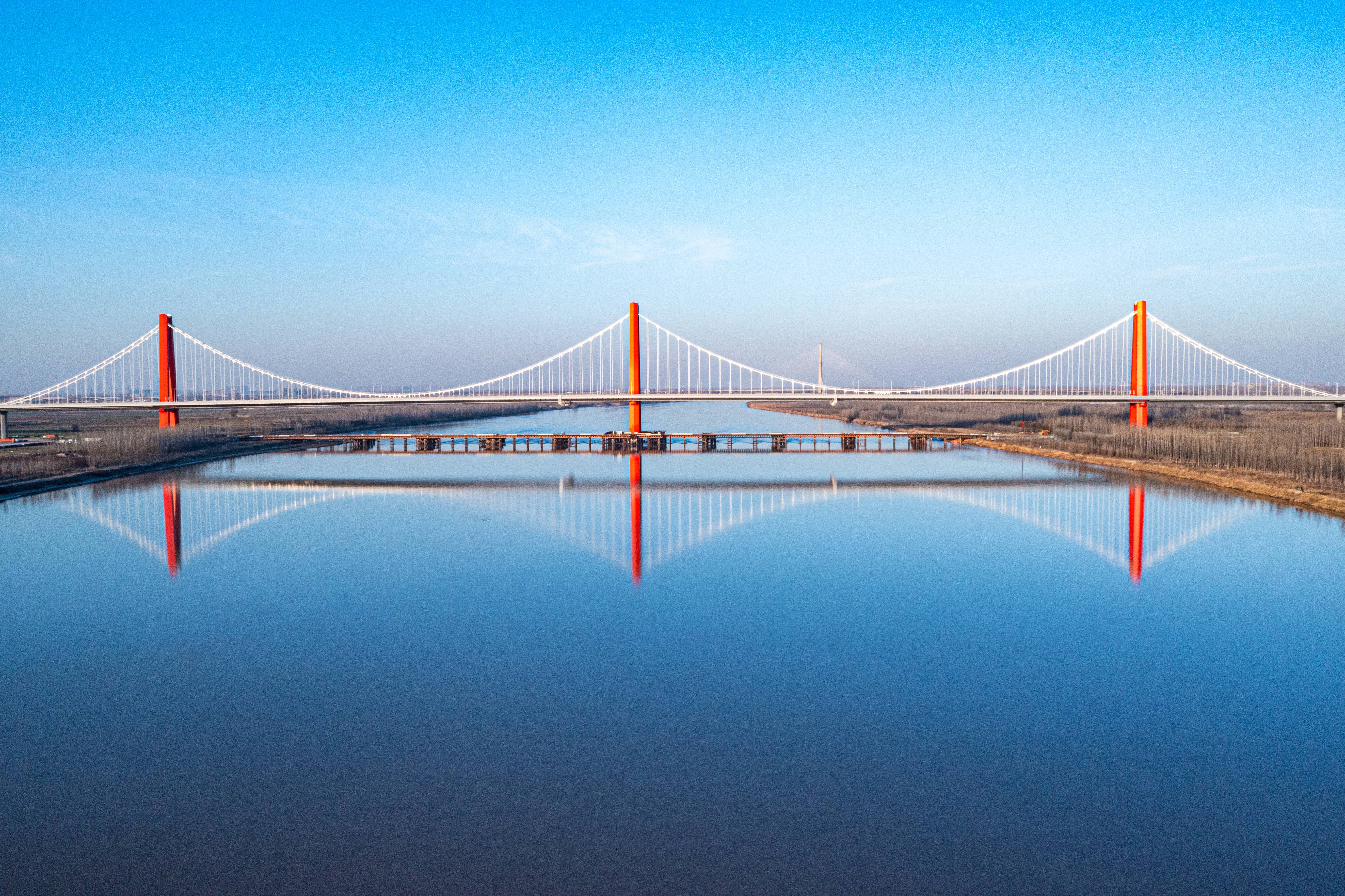 济南黄河凤凰大桥是联通济南市主城区和新旧动能转换起步区的重要纽带,是我市推进“北起”拥河发展战略的重要组成部分,更是贯彻落实国家黄河生态保护和高质量发展、国家新旧动能转换起步区及省委、省政府“强省会战略”三大战略部署的具体展现。该桥自2018年9月开工建设,2021年9月交工验收,2022年1月18日通车运行,是黄河上最大的三塔自锚式悬索桥,同时也是黄河上最大的钢结构桥。在工程建设期间,各参建单位抽调精兵强将,组建了优秀的项目团队,不断优化施工方案,加强精细化管理,努力克服新冠疫情等不利影响,全面攻克了工程钢结构体量大(大桥总用钢量高达11.4万吨,相当于2.7个鸟巢,三个钢塔1.4万吨的用钢量就等于两座埃菲尔铁塔)、不具备水运条件、水上大型设备无法使用,超长、超重、大悬臂、长距离、曲线钢箱梁顶推施工等各类难点要点,安全、优质、高效地完成了工程建设任务,创造了多项“世界之最”,是名副其实的“超级工程”,成为了国内先例,为在黄河上建设超大型桥梁积累了大量的宝贵经验。