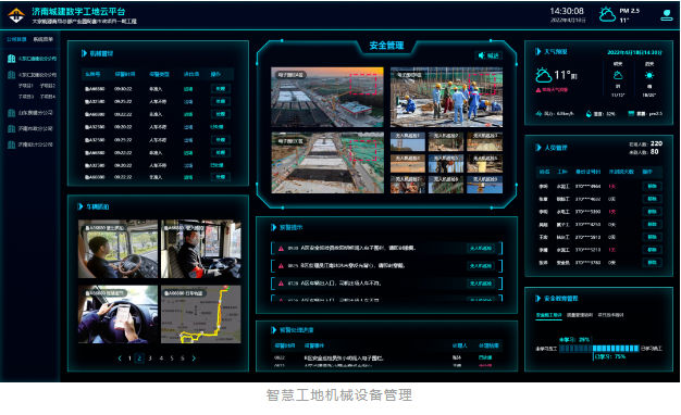 安全红线是工程建设的生命线。除了“常规动作”,为加强设备安全管理,降低机械伤害风险,城建集团公司推广应用“机械指挥官”材机智能化管理系统。通过在机械设备上安装一体机和360°摄像头,采集设备和操作人员信息,对操作人员接打电话、疲劳操作等违规行为及设备周边危险环境进行预警,安全管理人员可通过手机APP实时查询监控,目前,已在集团300余台设备上使用,取得良好效果。