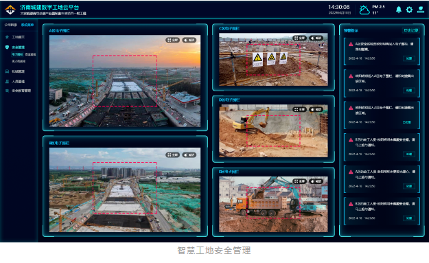 目前,城建集团公司结合工程一线施工实际,联合百度开发智慧工地管理系统,其中AI边缘计算盒子可通过训练模型等方式智能识别发现问题,自动报警反馈推送至相关人员,形成全方位、多层次、无死角监控预警,从原来的“人找事”转变为“事找人”,进入“智慧”工地管理阶段。