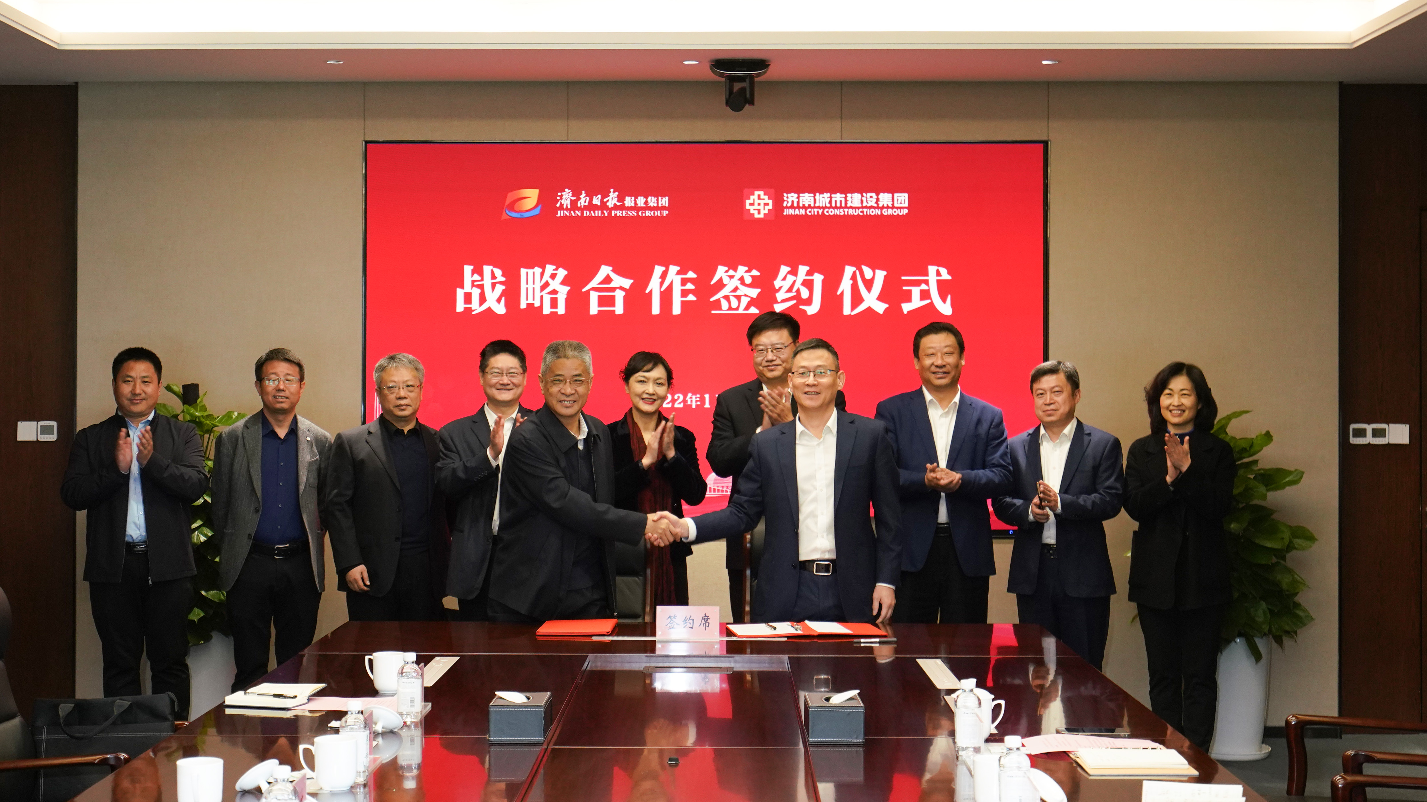 为深入贯彻党的二十大精神,强化企业合作,赋能强省会建设,11月4日,济南日报报业集团与济南城市建设集团举行“共建强省会”企业服务基地揭牌仪式,并签订战略合作协议。济南日报报业集团党委书记、董事长、济南日报社社长马利,集团总编辑、党委副书记、副董事长张楠,集团党委委员、副总编辑马凯;建设集团党委书记、董事长史海成,党委副书记、总经理许为民,党委副书记钟善良参加活动。