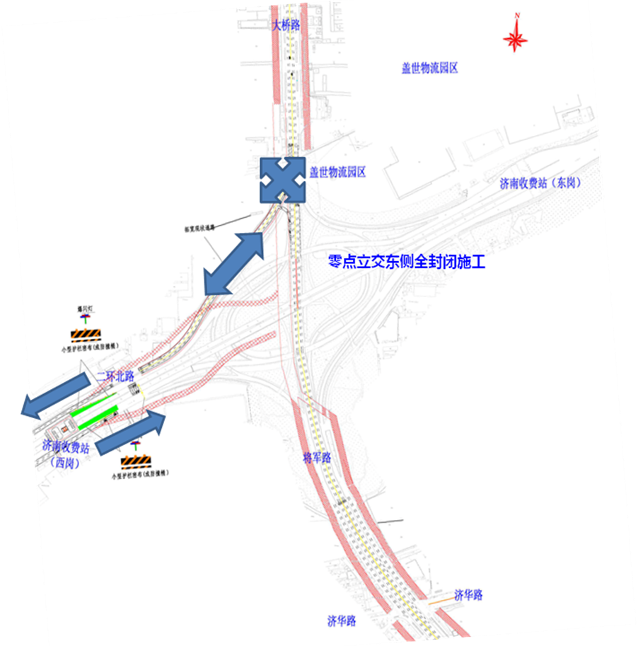 2022年5月6日0时,将封闭G35济广高速零点立交桥济南站东岗收费站,拆除零点立交全部转向匝道。