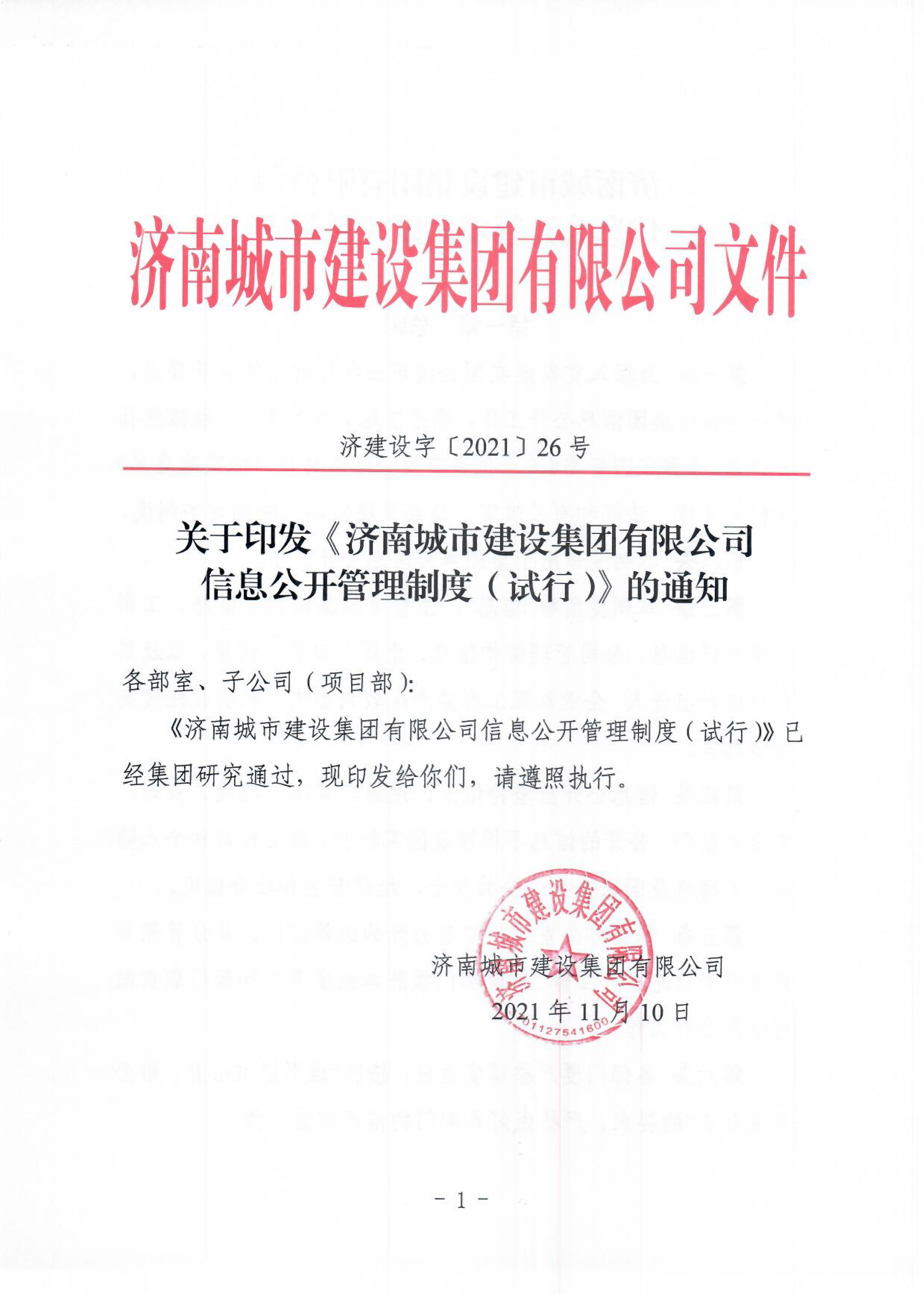 关于印发《济南城市建设集团有限公司信息公开管理制度(试行)》的通知