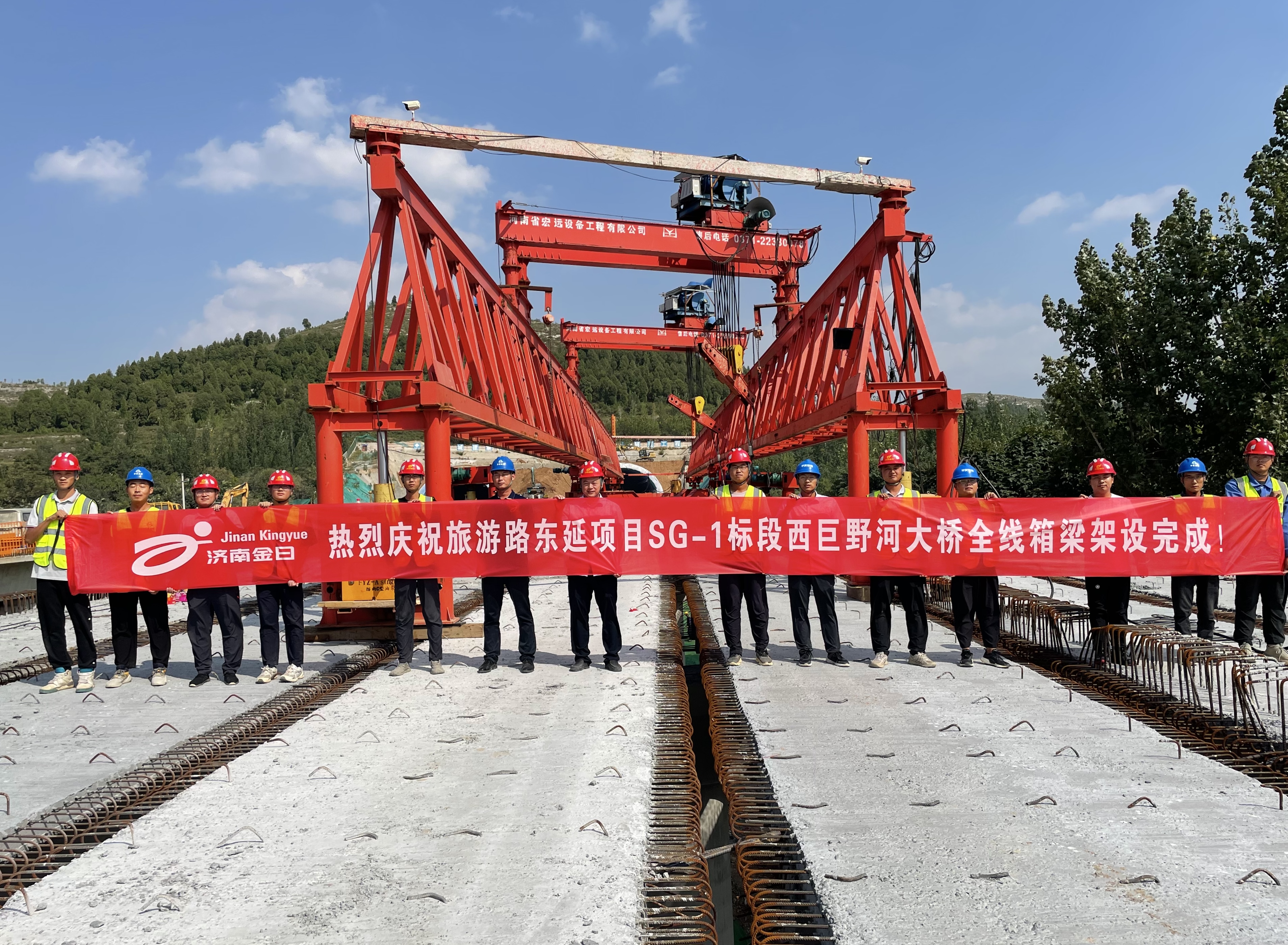 9月22日,随着一片长30米、重约105吨的箱梁稳稳就位,由建设集团所属济南金曰公路工程有限公司承建的旅游路东延项目西巨野河大桥梁板架梁施工圆满完成。