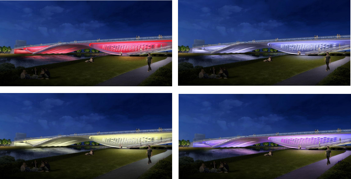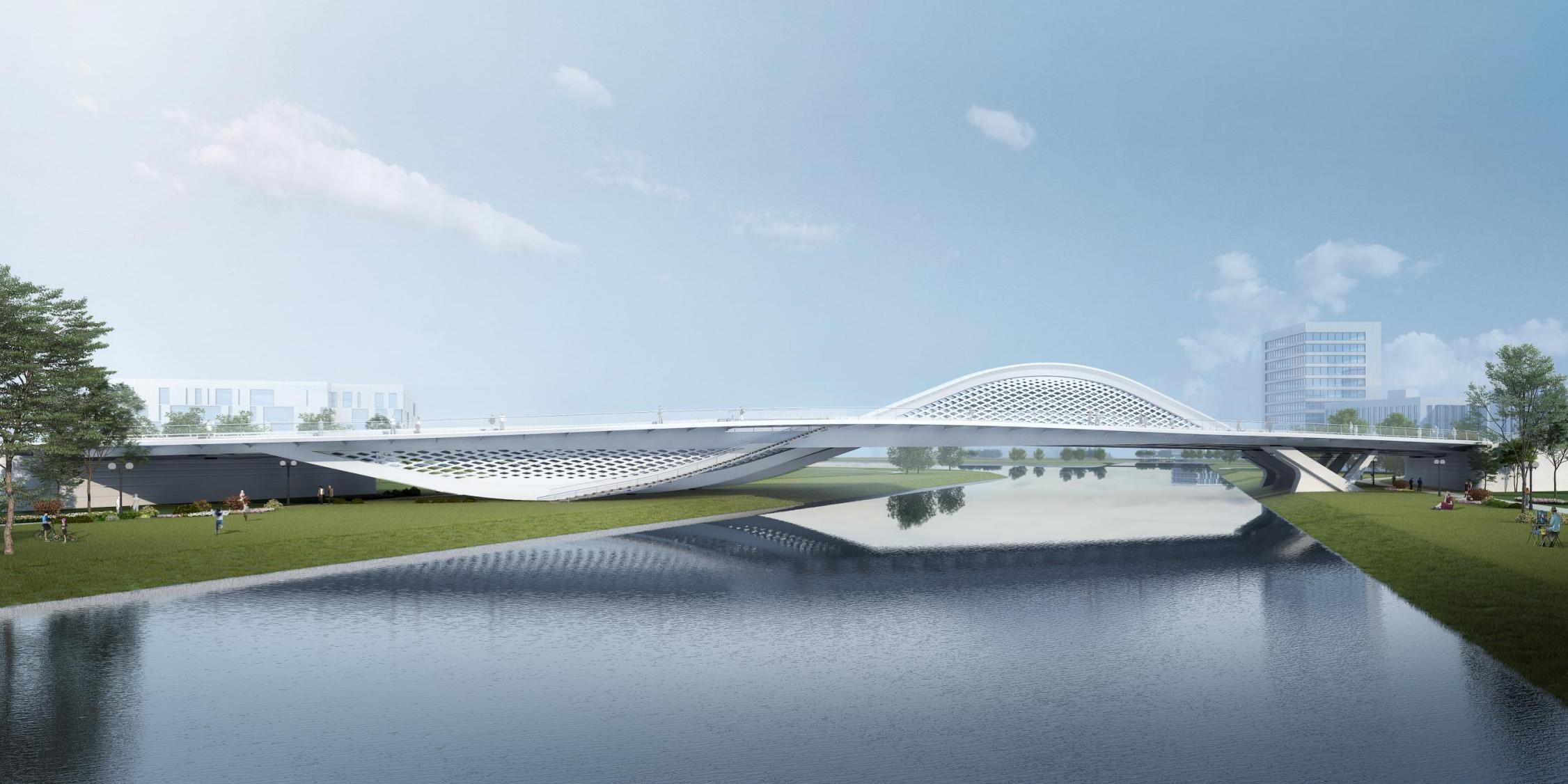 横一路、横二路大寺河桥作为起步区规划的第一批景观桥梁,由济南城市建设集团有限公司受委托建设,两座桥梁由世界著名桥梁设计师Marc MIMRAM先生主设计,通过研究济南的历史和文化,以泉与太极这个设计为根基,将泉城的刚中有柔、柔中带刚,与太极互为印证,力与美相结合,完成两座景观桥梁的设计。