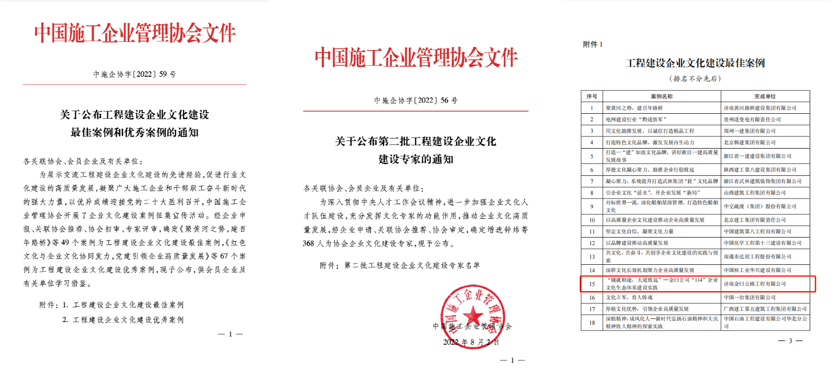 9月6日至7日,建设集团所属金曰公司参加中国施工企业管理协会在南宁市召开的2022年工程建设行业文化大会,金曰公司《“铺就坦途,大道致远”—金曰公司“114”企业文化生态体系建设实践》作品获评工程建设企业文化建设最佳案例,4人被增选评为中国施工企业管理协会企业文化建设专家。