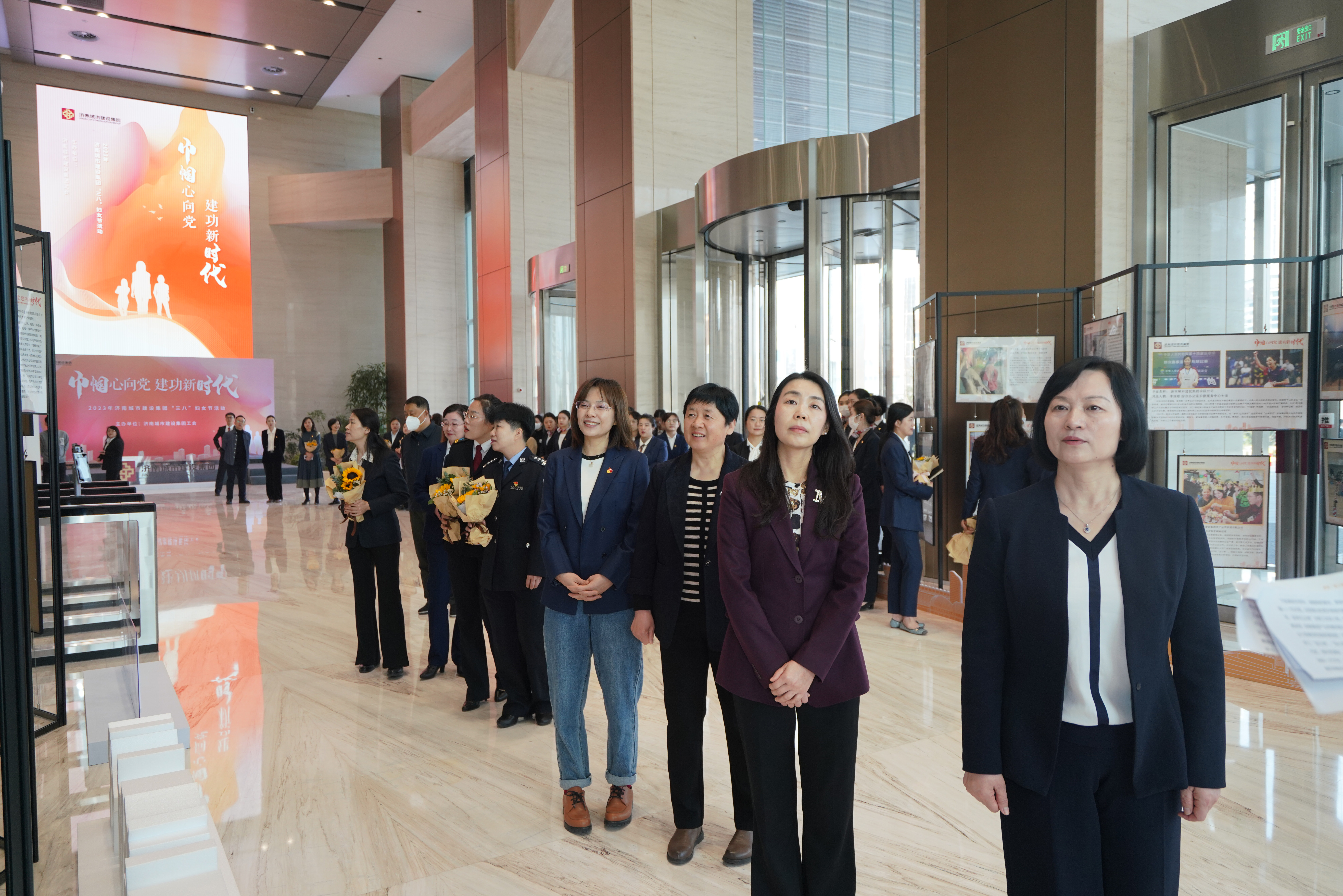 与会领导及集团优秀女职工代表参观“巾帼建设力量”主题展、剪纸艺术家剪纸表演。