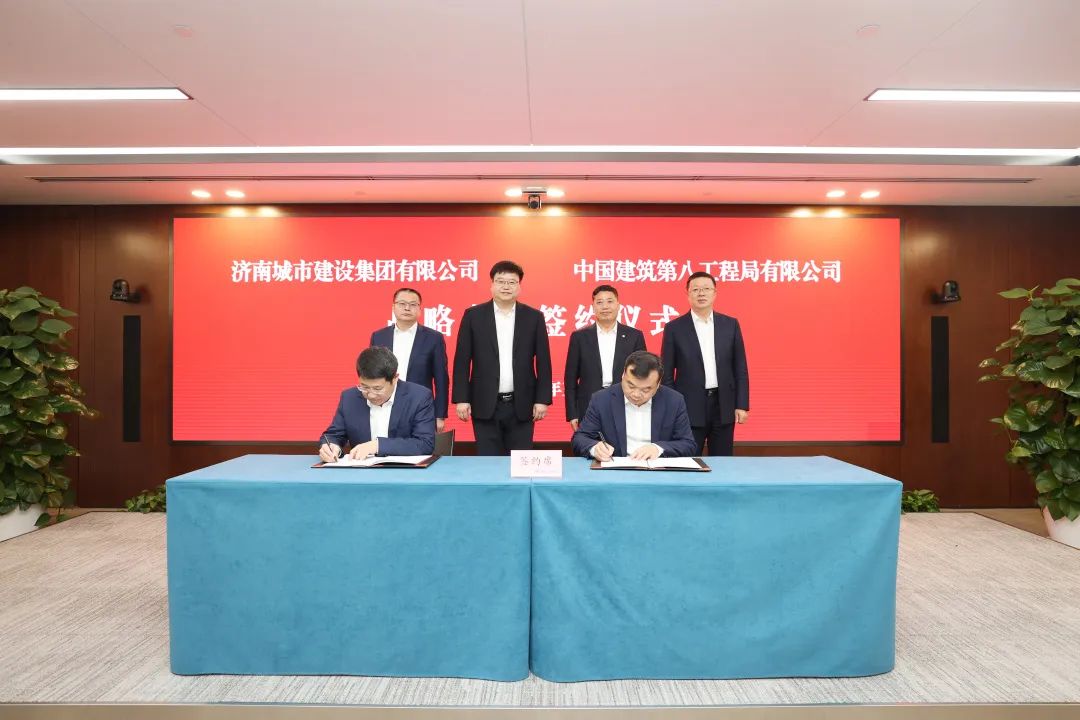 在与会领导的共同见证下,刘书冬、张建分别代表中建八局与济南城市建设集团签署战略合作协议。根据协议,双方将进一步整合要素资源,完善沟通机制,在基础设施建设、片区综合开发、城市更新及运营等领域深化合作,共同推进高质量发展和济南强省会建设。