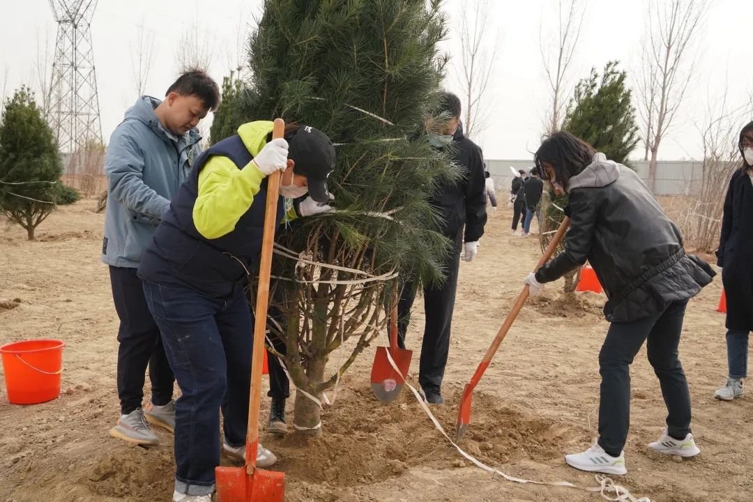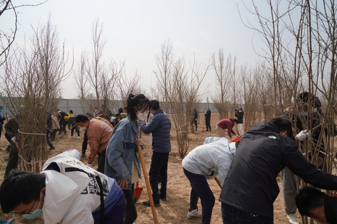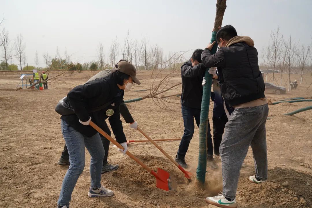 植树活动中,大家在工作人员的指引下,密切合作、分工配合,在树木种植范围内,深挖基础,厚培春壤,种下数百棵树苗,为泉城济南增添新绿。