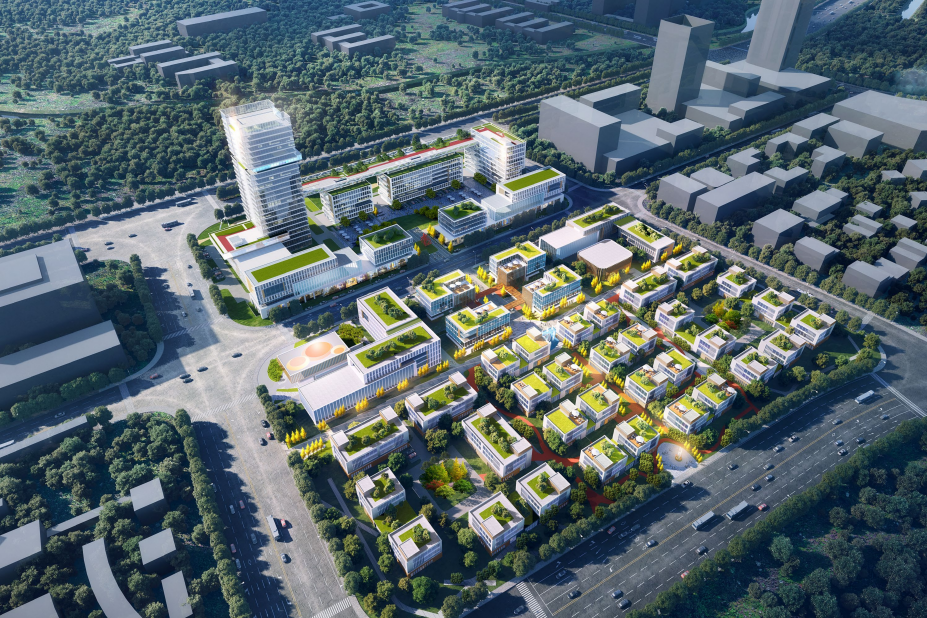 项目引景入院,打造办公、休闲、社交、生活于一体的生态园区、花园式办公。采用“前庭后院、连续景观,以小窥大、移步异景”等筑园手法,自然与都市之间相互交融,融入自然的花园式办公体验。