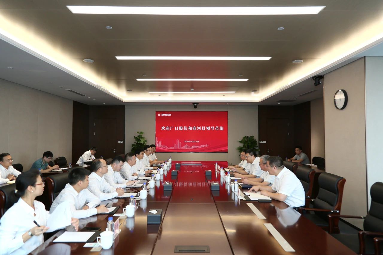 9月26日,商河县委书记袁长奎,广日股份党委副书记、副董事长、总经理朱益霞一行到建设集团开展座谈交流,商河县委常委、办公室主任路来光,县委常委、副县长李俊卿,广日股份副总经理林祥腾,广日电梯党委书记、董事长林振中,建设集团党委书记、董事长史海成,建设集团副总经理徐文东参加座谈。