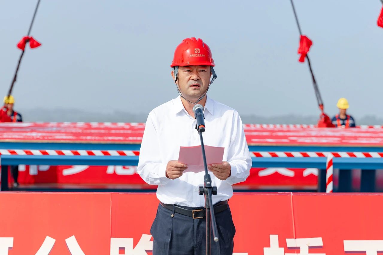 建设集团党委书记、董事长史海成宣布G104京岚线济南黄河公路大桥主桥合龙。