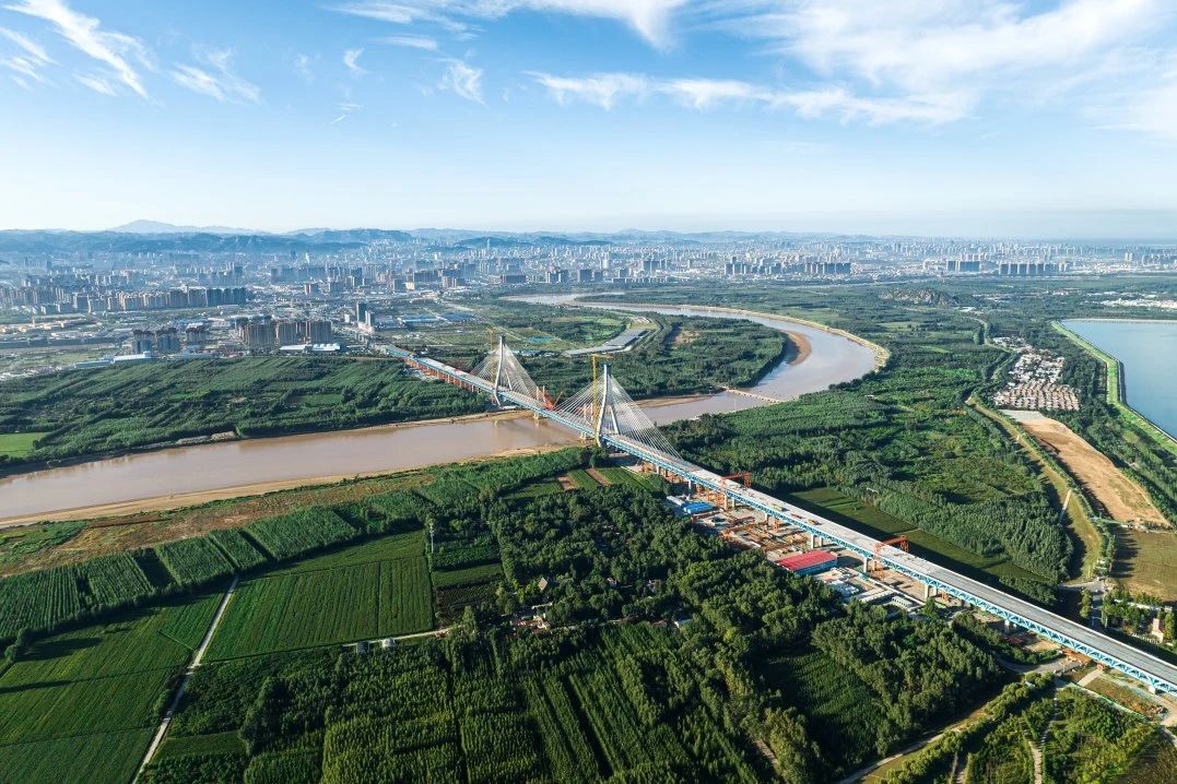 G104京岚线济南黄河公路大桥工程是连接济南新旧动能转换起步区与老城区的南北向主干道,是济南市“四桥四隧”规划建设的重要组成部分,对助推济南加速迈向黄河时代、促进起步区经济社会发展具有重要意义。项目采用双塔双索面公轨合建钢桁梁斜拉桥形式建造,全长7.748公里,主线桥梁工程长6.87公里,建设工期48个月,计划2025年6月底通车。