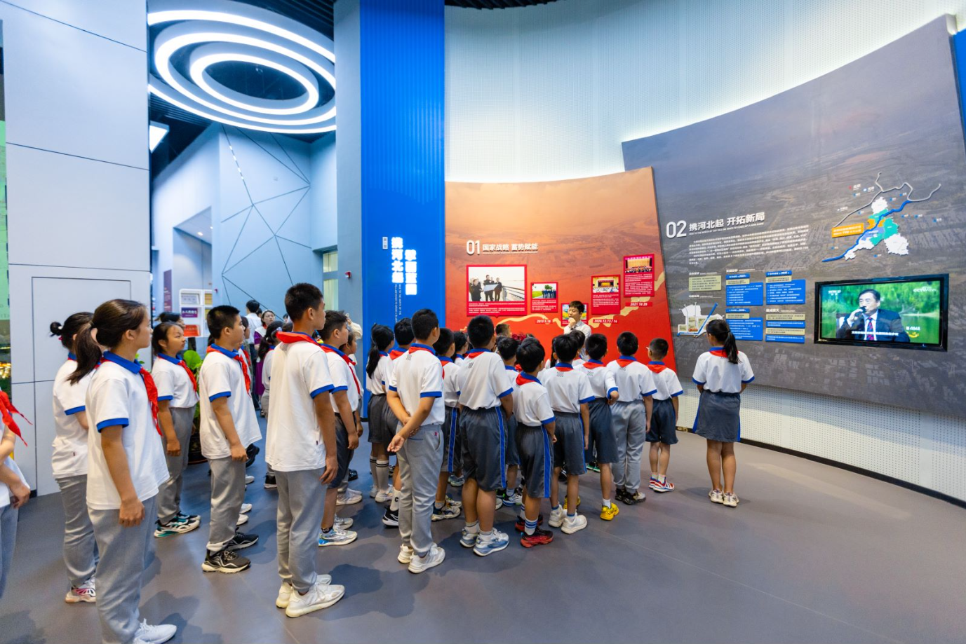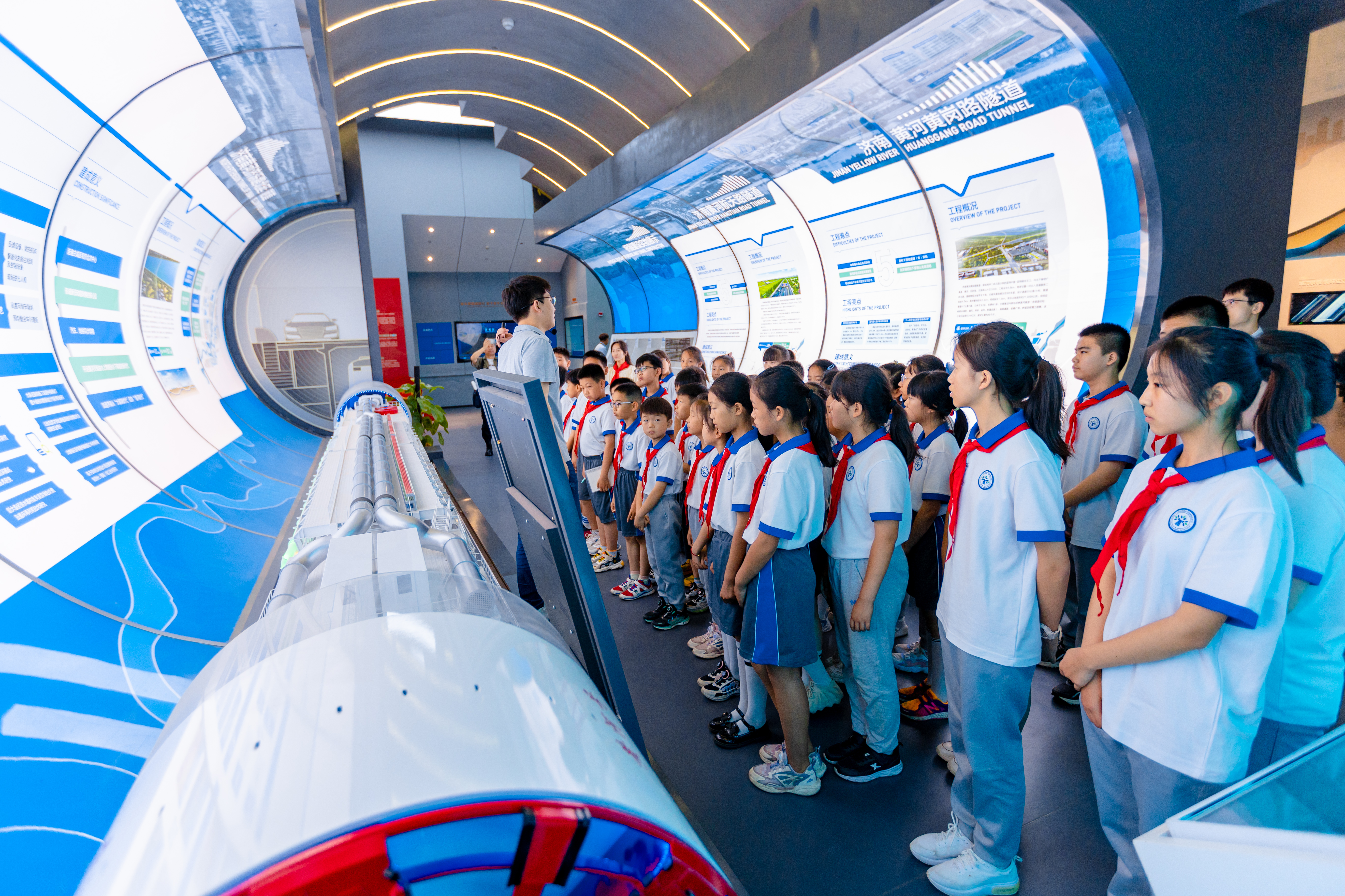 在济南城市建设集团“四桥四隧”展厅,少先队员们感受了济南城市建设集团在落实黄河流域生态保护和高质量发展战略及“项目建设年”工作部署中的生动实践。