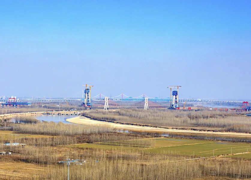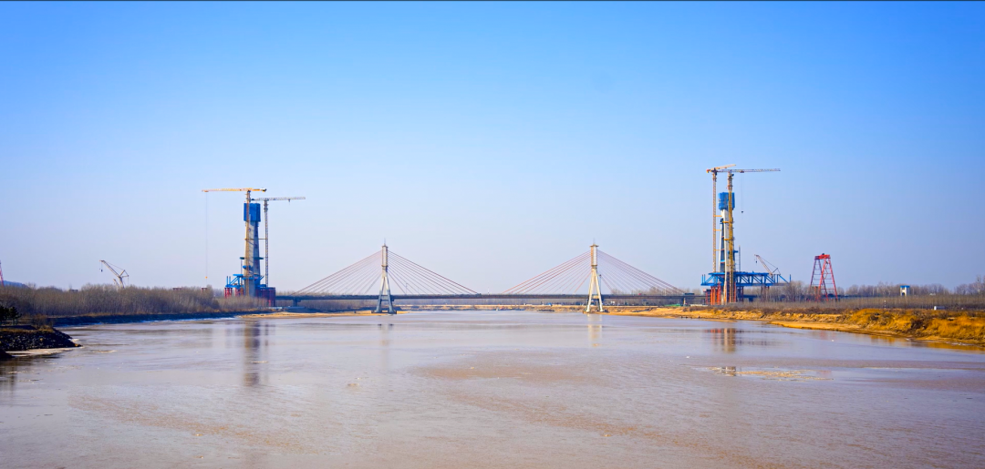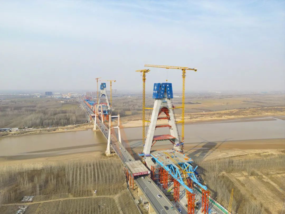 黄河流域济南段,济南黄河公路大桥东侧,黄河上第一座不等跨并桥建设工程,同时也是黄河上跨径最大、钢桥总长最长的公轨分层合建桥梁,济南黄河公路大桥改扩建工程正在有序推进工程建设。1982年建成的当时亚洲跨径最大的济南黄河公路大桥,在服役41年之后,见证着又一次“历史跨越”。