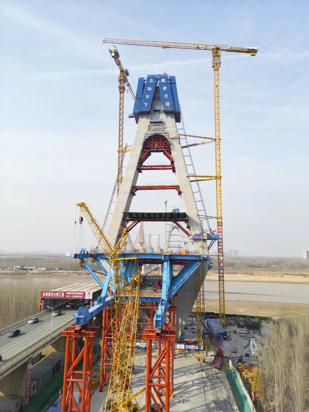 目前,济南黄河公路大桥改扩建工程主桥部分下部结构施工完成,钢桁梁架设61节间,主塔已施工至上塔柱;零点立交段,济南西岗收费站及跨将军路南侧匝道桥已拆除,正在进行现浇箱梁及轨道交通土建预留围护桩、高压旋喷桩施工。