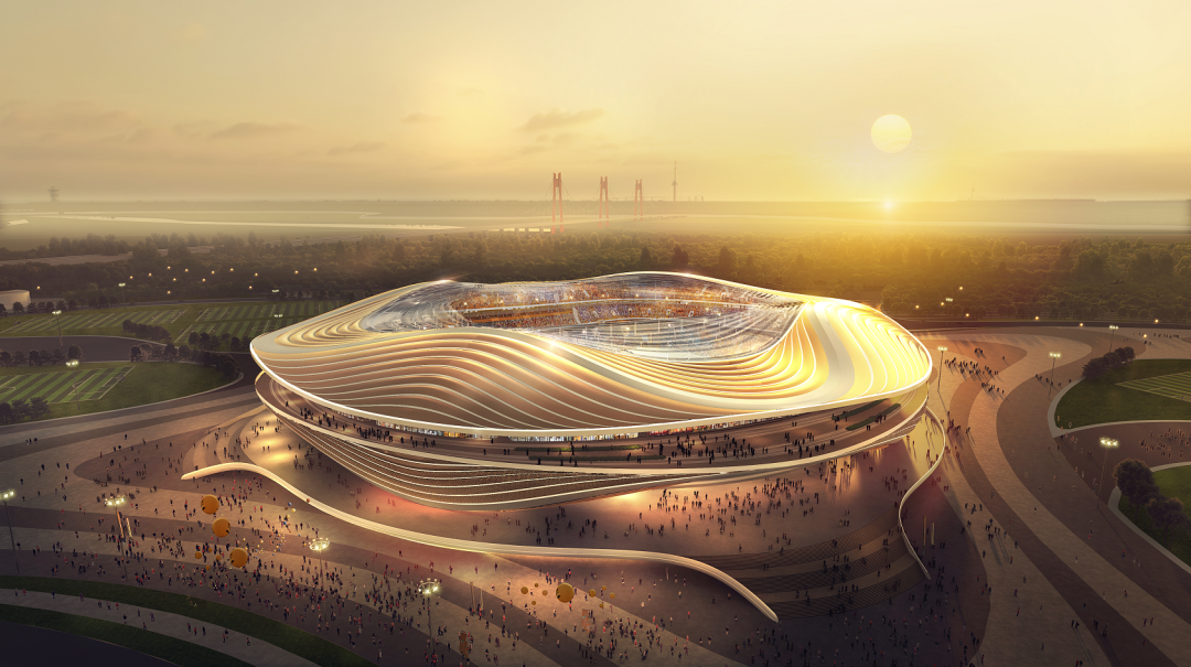 济南新旧动能转换起步区黄河体育及科技园区基础设施一期工程位于济南市起步区崔寨片区内,紧邻黄河建设,北至凤凰路、南至华河路、西至黄河大道、东至规划路,包括专业足球场、体育馆、游泳馆及全民健身中心。其中,专业足球场总建筑面积约19.7万平方米,地下1层,地上5层,建筑高度60米,场馆外圈直径达280米,索桁架最大悬挑长度约45米,总用钢量2.34万吨。建成后可容纳6万余人,是省内首座超大型专业足球场,国内最大的专业足球场之一,具备承办世俱杯、亚洲杯等国际足联、亚足联的顶尖赛事能力。