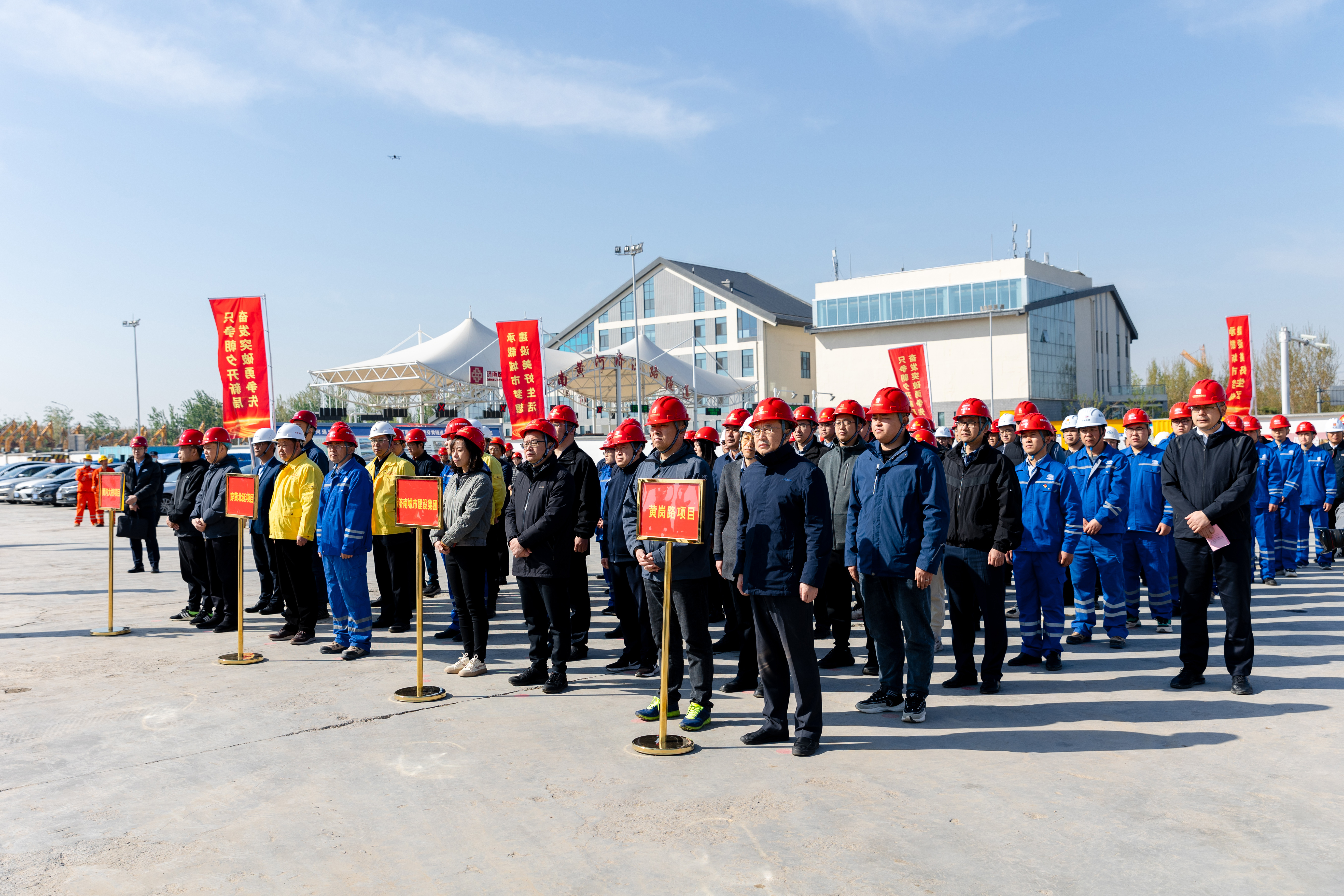 4月8日,建设集团在济泺路穿黄北延隧道盾构始发井现场举行“只争朝夕开新局,奋发突破勇争先”2023年跨黄桥隧项目攻坚战活动启动仪式。