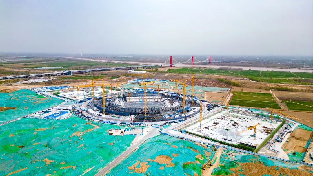 项目总建筑面积约19.73万平方米,地下1层,地上5层,建筑高度60米,场馆外圈直径达280米,索桁架最大悬挑长度约45米,总用钢量2.34万吨。建成后可容纳6万余人,是省内首座超大型专业足球场,国内最大的专业足球场之一,具备承办世俱杯、亚洲杯等国际足联、亚足联的顶尖赛事能力。目前,足球场地下一层主体已全部完成,正有序推进地上主体结构施工工作,预计2024年底竣工。