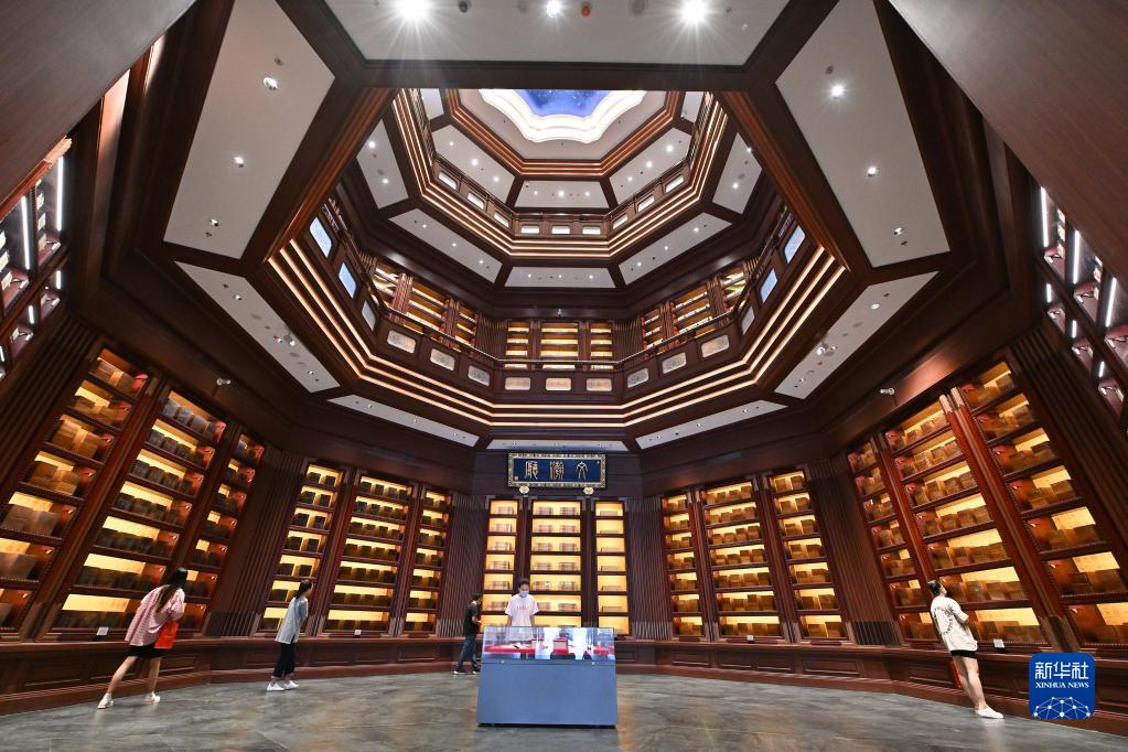 观众在位于北京的中国国家版本馆中央总馆文瀚厅内参观(2022年7月30日摄)。新华社记者 李鑫 摄