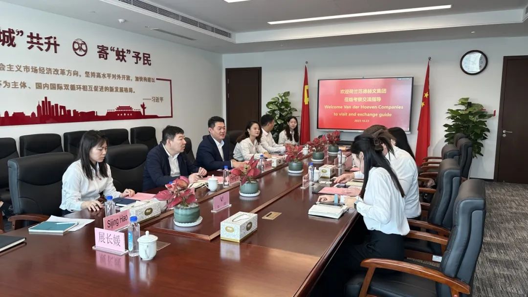10月23日,荷兰Van der Hoeven(范德赫文,简称VDH)集团考察团到访城蚨国际贸易集团、济西农业公司,就一站式智能温室建设、先进设施农业及贸易业务进行座谈交流,VDH集团中国分公司副董事长陈文娟、销售总监Peter-Jan Snellink,建设集团所属城蚨国际贸易集团公司、济西农业公司相关负责同志参加活动。