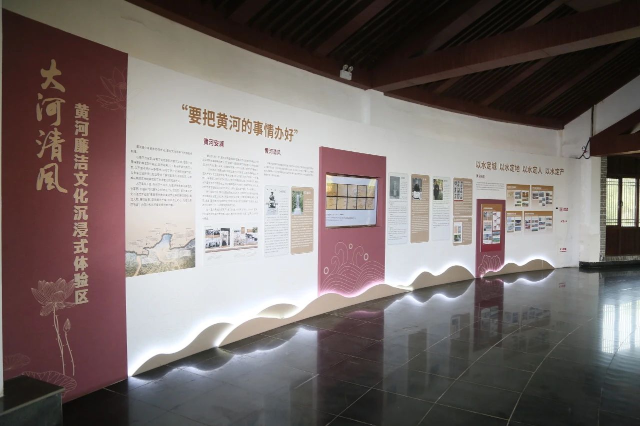 在“沐清风”展区,通过“黄河安澜”“黄河清韵”“黄河新貌”“黄河清风贯古今”四个部分,以故事为叙事载体,辅以多媒体展示,打造“大河清风”黄河廉洁文化沉浸式体验区。