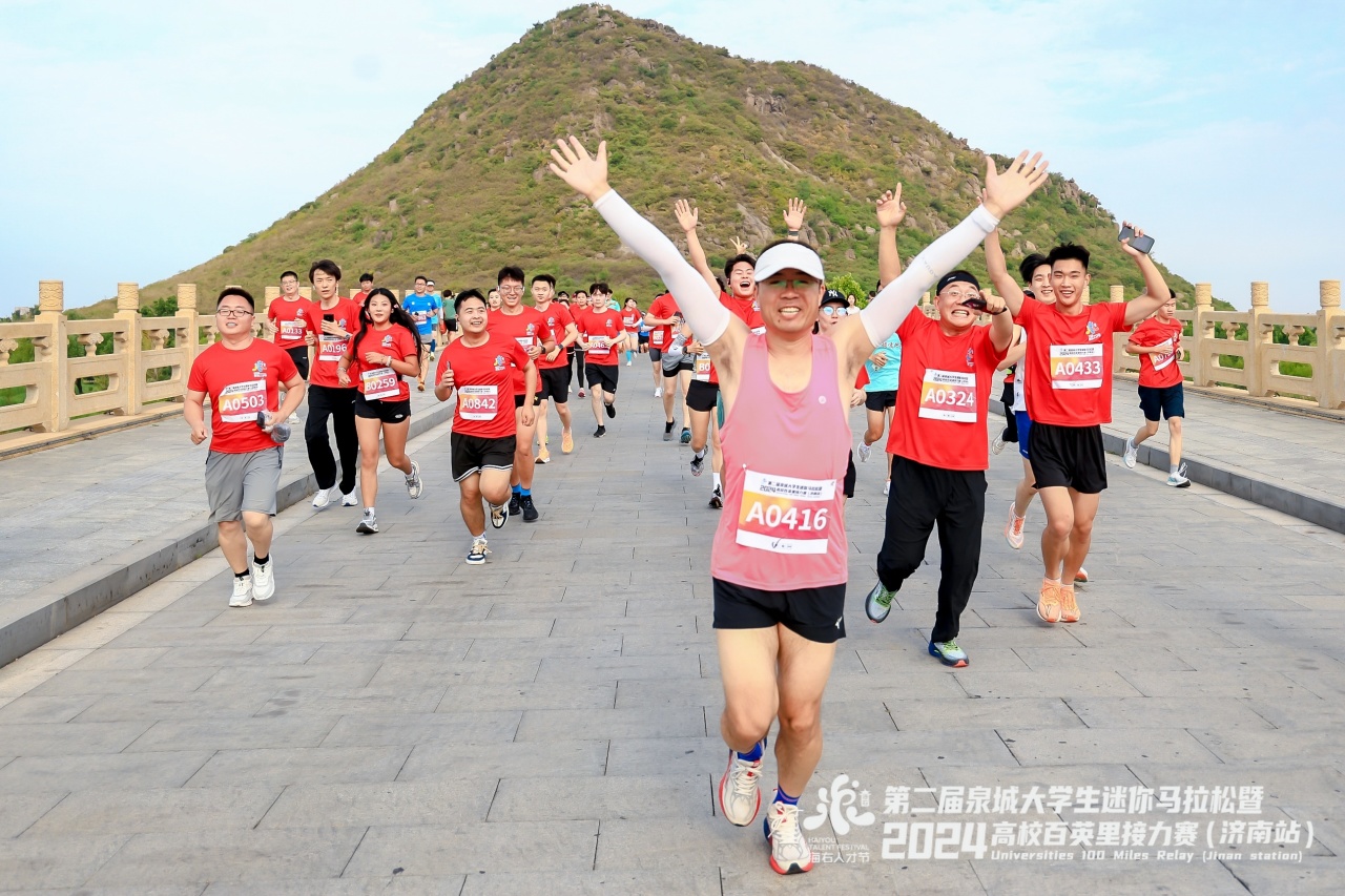 “泉”在济南,逐梦奔跑。6月16日,第二届泉城大学生迷你马拉松暨2024高校百英里接力赛(济南站)在济南华山湖景区成功举行,来自全国的43支高校队伍、86组运动员参赛,5000余名大学生及校友会成员参加了迷你马拉松。
