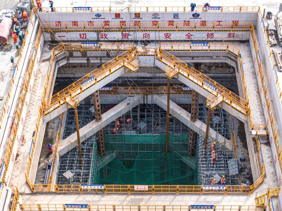 作为国内水下最大直径的盾构隧道的济南市黄岗路穿黄隧道工程,目前正在开展北岸始发井、南岸接收井及机架段的开挖支护和结构工程的施工。其中北岸始发井主体结构施工,已完成70%,预计2024年5月份能完成顶板封顶工作;南岸接收井及明挖段围护结构已施工完成,正在进行土方开挖及主体结构施工,预计2024年底能够完成全部主体结构施工。同时,盾构机预计2024年5月份能够下线、进场组装,计划年内进行盾构始发。