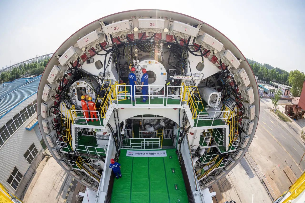 “山河号”泥水平衡盾构机由济南重工集团、海瑞克集团联合济南城市建设集团、中铁十四局集团研发制造,最大开挖直径17.5米,盾构机总长163米、重约5200吨、装机总功率12580千瓦;配备各类型开挖刀具共计306把,其中57把具备滚齿互换功能,以优化其在多变地层中的作业性能;装配带压复合型刀盘、伸缩式主驱动、泥水仓伸缩摄像头;搭载刀盘磨损自动监测、设备状态在线监测和“五官一脑”智能化装备系统,并通过大盾构云智慧平台实现远程操控,以保证掘进安全和效率。